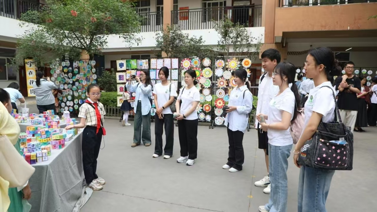 随后,师生们在讲解员的解说中参观了盘古路小学的诗词、汉字展。每一个展区都展示着学生们的精美作品,从十二生肖到汉字魔方,无一不体现了盘古路小学学生对汉字文化的深刻体会和喜爱,同学们也在这些作品中深入了解汉字文化的魅力。