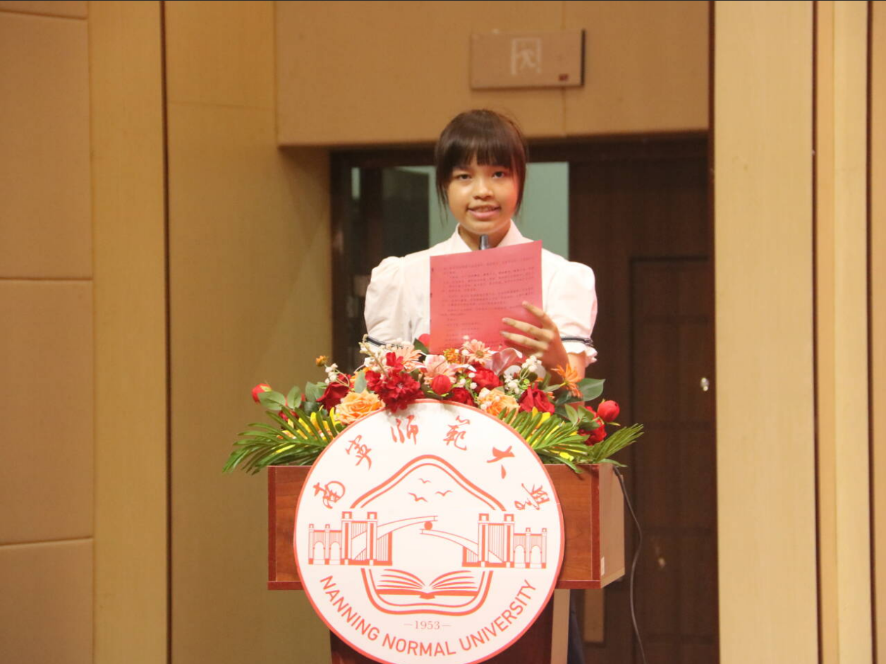 接着,教师代表罗聿言博士分享个人过往、职业经历与成就,介绍学院优势,勉励新生惜当下、规划未来,还寄语新生“愿君一夏长林间,他日将来做栋梁”。高年级学生代表2023级陶班廖元群分享自己的成长收获,为新生送上祝福。本科新生代表2025级本科1班兰昱霖、研究生新生代表2025级研究生赖静怡分别发言,表达了对大学生活的憧憬与奋进决心。